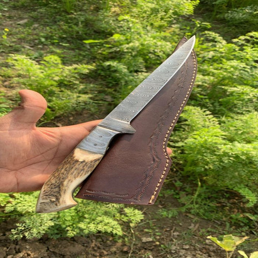 Beautiful Custom Handmade Damascus Steel skinning knife gift ideas family gift birthday gift personlized gift leather sheath